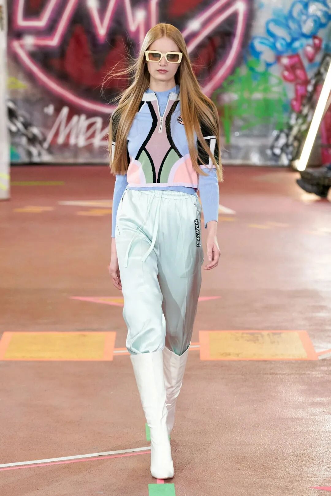 本季Mark Fast把伦敦时装周带回90年代,向所有混乱及壮丽的地下世界作致敬。独特夸张设计配上新MF字母组合链带融合于服装,极具代表性大胆色调和霓虹风格将在本季与柔和粉彩并列,大胆的色彩和链带装饰增加了设计戏剧性的力量,俏皮的针织衫横跨女装和男装,就像一条贯穿始终的线,吸引着人们的目光。