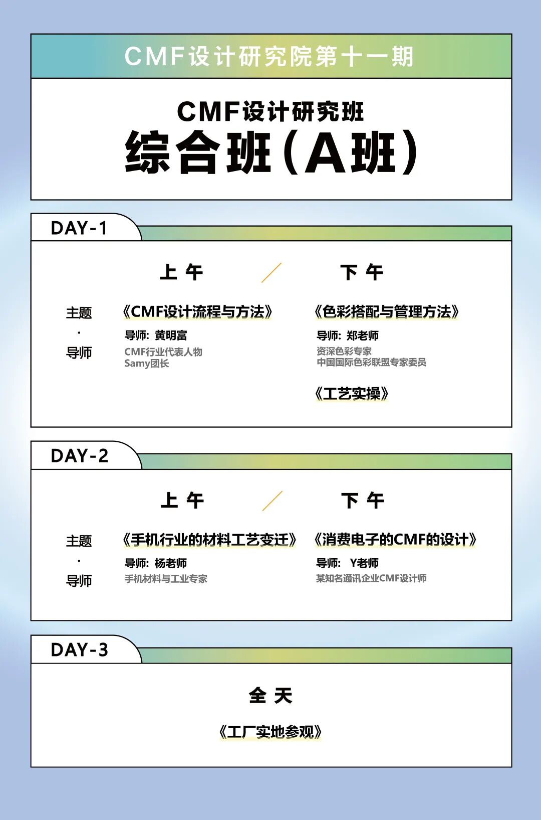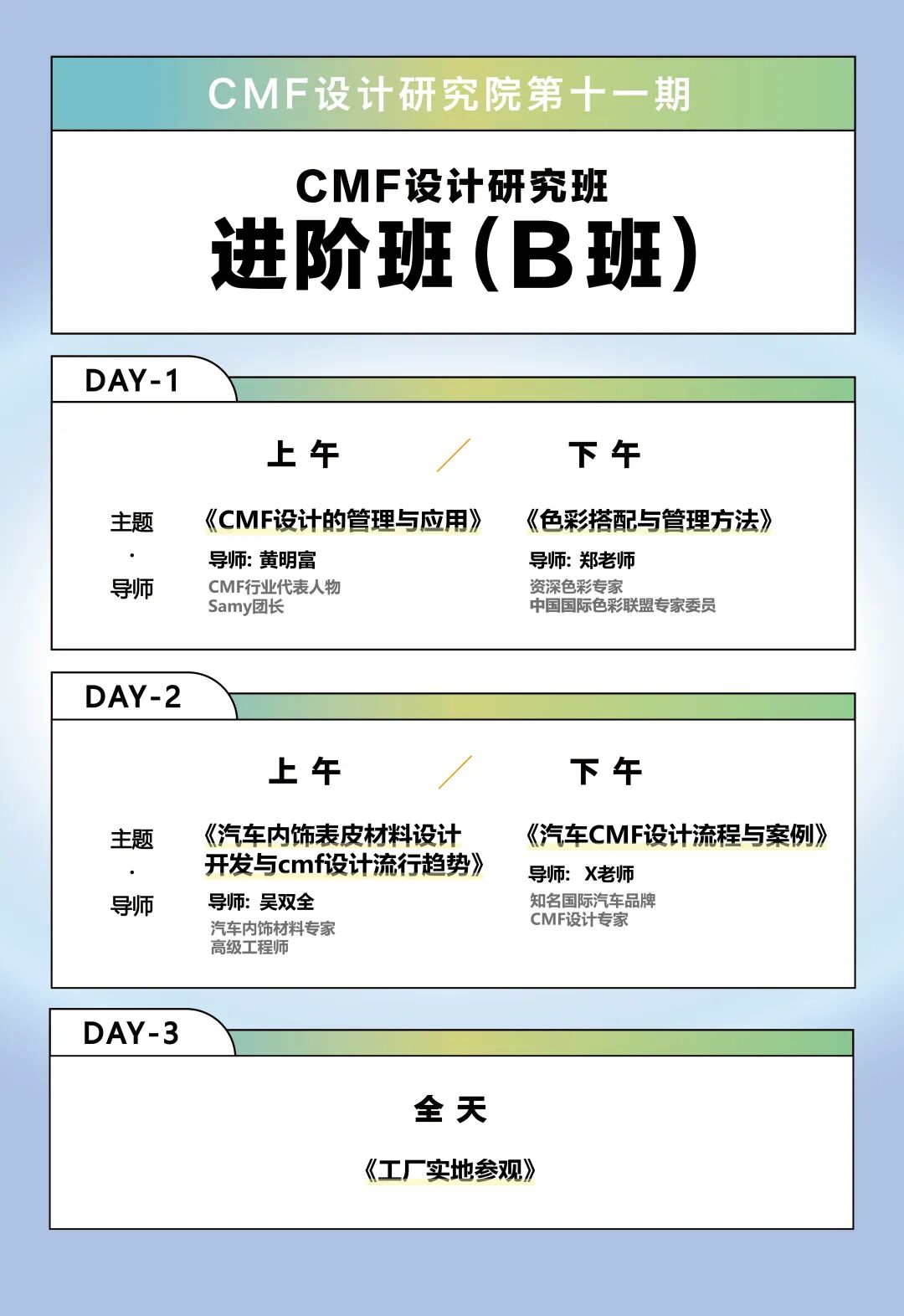 我们在充分保留前十期课程的优点和精华的前提下,进一步优化和升级课程,全新推出了2023年度的CMF设计研修班课程。