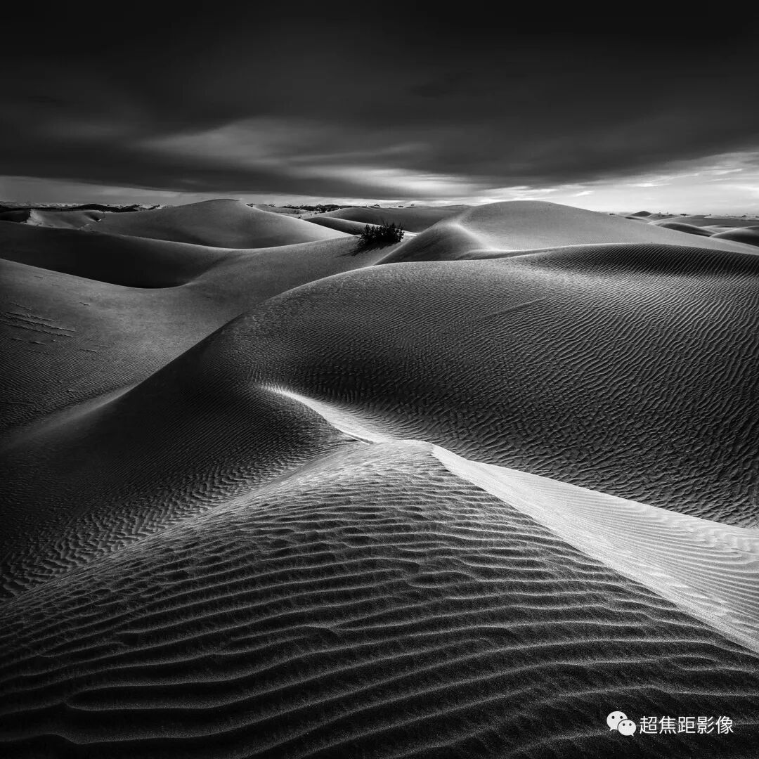 十几年前去额济纳拍胡杨,顺便去了附近的沙漠拍片,因为风很大,细沙漫天飞舞,打在脸上还有点疼,担心相机进沙,不敢多拍。时隔多年再一次去那里,不料风沙更大,相机都不敢拿出来,又一次错过了机会。虽然没有拍到,但一直喜欢沙漠延绵不断、波浪起伏的那种节奏与韵律,喜欢那被风吹过而形成的独特质感,喜欢那流畅、圆润的线条以及明暗交替的不同形状、结构与影调。如果有机会,即使是会损坏相机,也要把那迷人的沙漠拍回来。