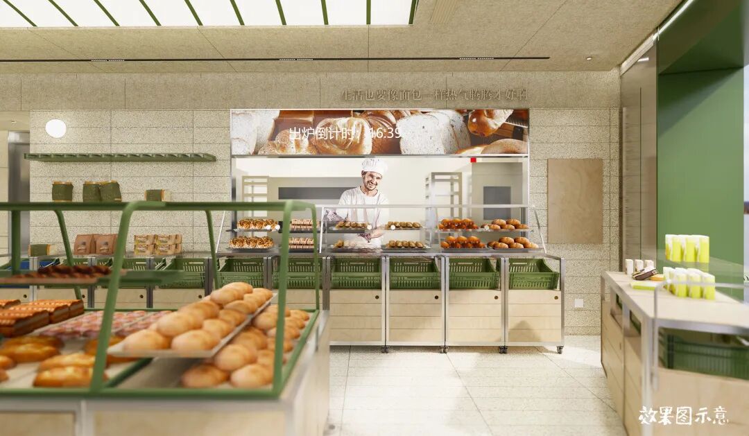 因此我们将现烤间前置,扩大现烤展示窗口。