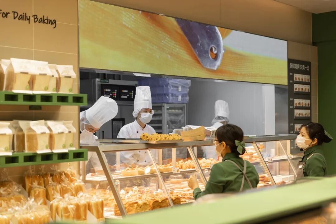 从进店到收银,整个购物体验都被包裹在现烤间的展示范围内。