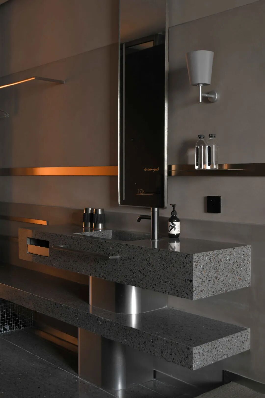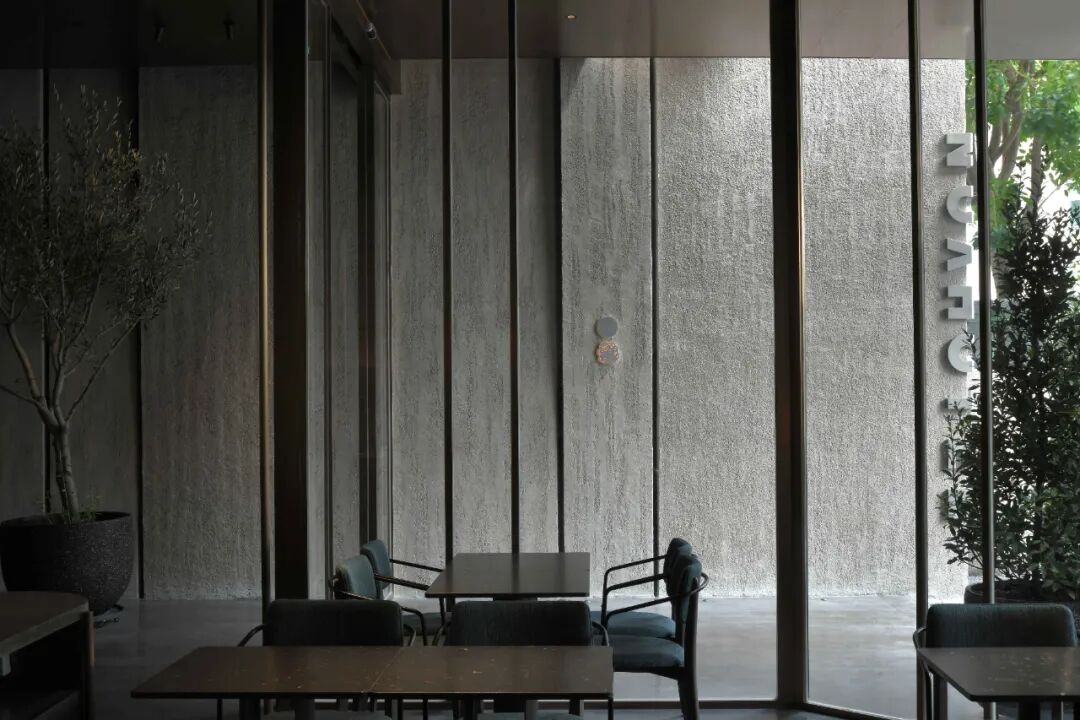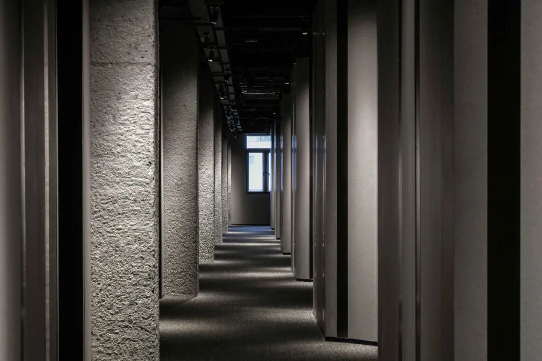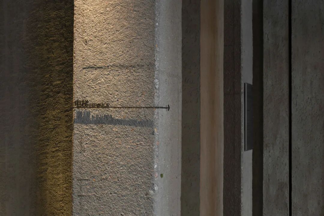 城市的大规模建设离不开大规模的材料开采,深圳「DECK甲板」用大篇幅粗旷、且带着倾斜面的墙体,展现采石场被开采的痕迹。回溯了酒店所在的罗湖区当年热火朝天的建设场景。