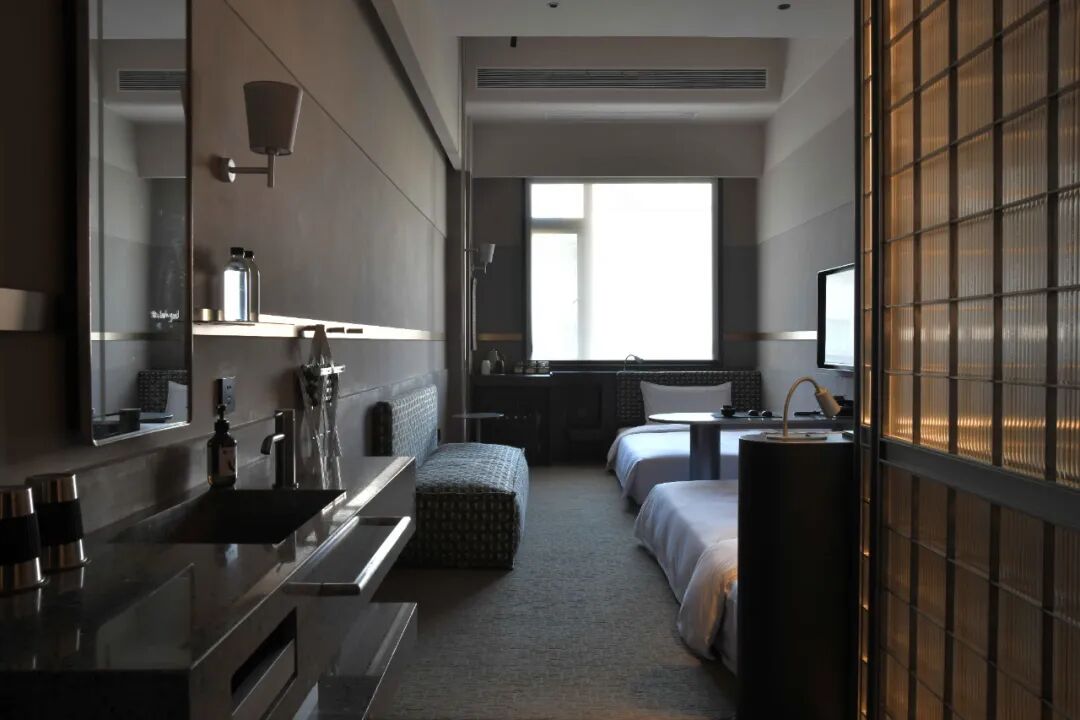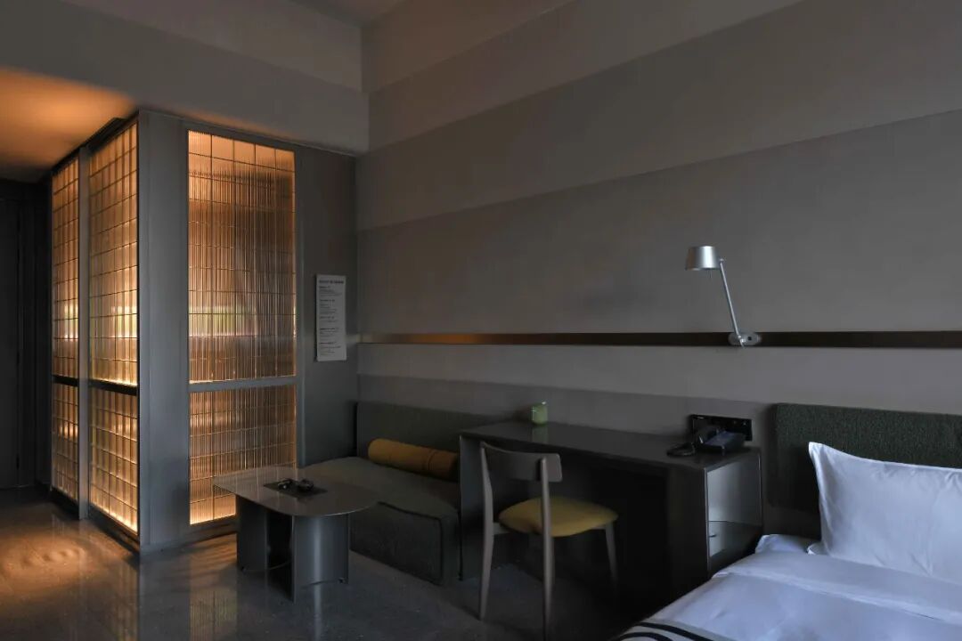 主流的大床房相较厦门的“一代”,插入了更开阔的工作区。长榻、书桌、睡眠区,三者交替有致。