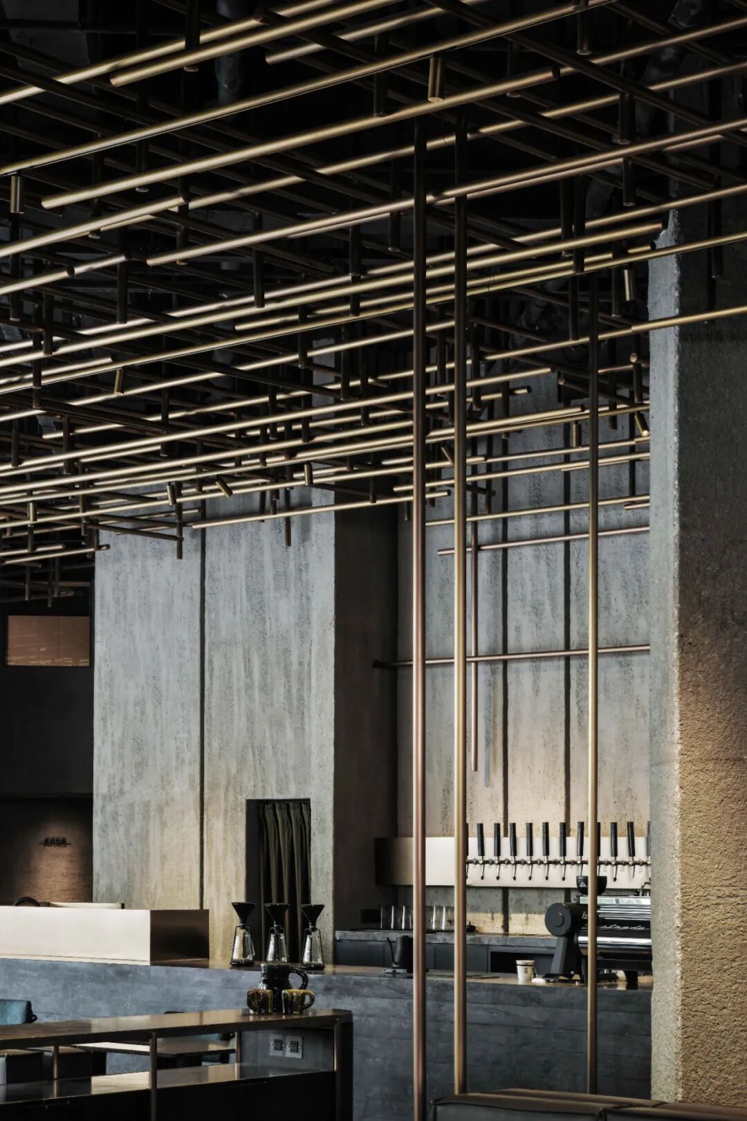 相对厦门NOA的「DECK甲板」,深圳用了更为开敞的空间和更多的金色元素,展现深圳更为年轻精致的城市基底。厦门「DECK甲板」中呼应诺亚方舟和厦门港口城市头衔的“桅杆”元素,在深圳变身为“脚手架”,隐喻了深圳日新月异的建设浪潮。
