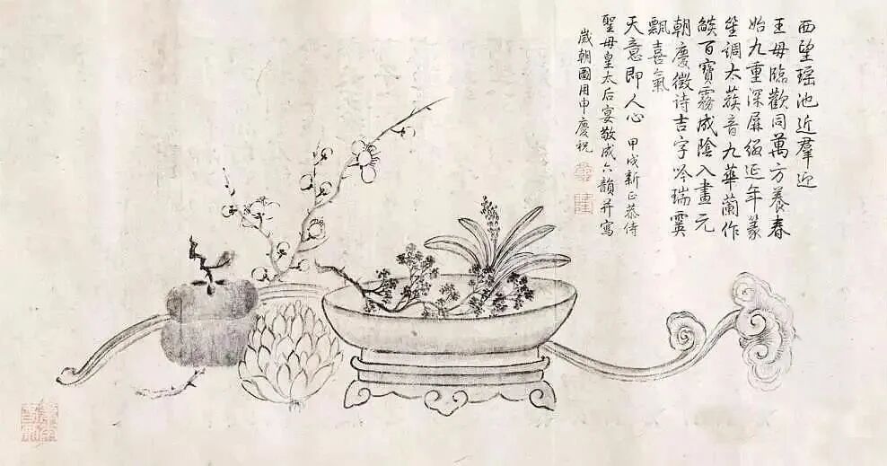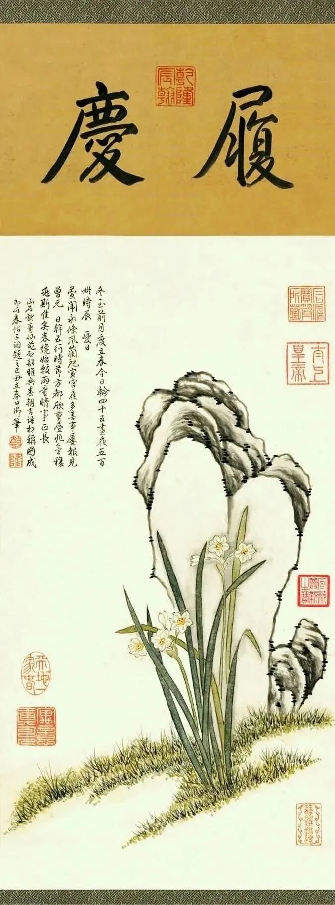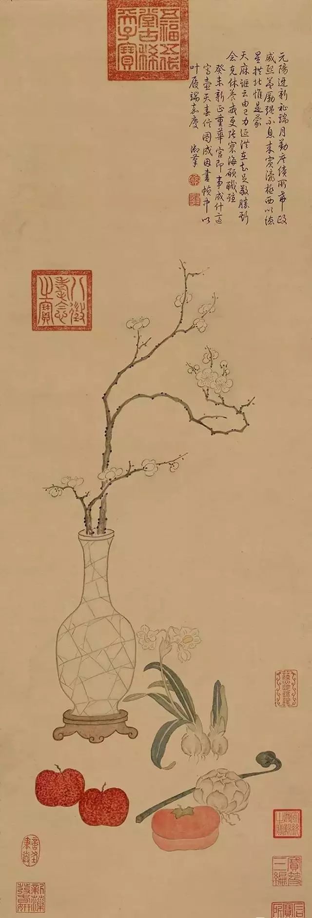 作品集2023-11-06 乾隆帝过年画的吉祥画,年味十足 乾隆56岁御笔《岁朝图》 “岁朝图”是我国传统绘画题材,通常画中以物品的名称谐音、民俗寓意或历史掌故来表现一个美好的新年祝福。 每年此时,清代皇帝都要举行仪式,亲绘岁朝图。 ..................................................................................................................... 时间是一年之始的除夕子时,皇帝来到养心殿东暖阁明窗,亲手点燃“玉烛长调”,把屠苏酒倒入金瓯永固杯,握起万年青笔,书写下天下新年第一笔,内容大概是“天下太平”、“风调雨顺”一类的吉祥语、欢喜话。 ........................................................................................................... 乾隆45岁御笔《岁朝图》 ........................................................................................................... 这幅《岁朝图》,是乾隆45岁画的。绘有瓶、竹、灵芝、萝卜、新春大吉字条,此图运笔墨色浓淡间颇有意趣。 ........................................................................................................... 乾隆49岁御笔《岁朝图》 ........................................................................................................... 这幅乾隆的御笔《岁朝图》绘制,诗塘上题“韶华”二字。 ........................................................................................................... 乾隆44岁御笔《岁朝图》 这是乾隆44岁画的《岁朝图》,题为“喜报春信”。此作乾隆皇帝以锺馗表达祛魅、辟邪之意,以红蝙蝠来寓意洪福之意。 乾隆43岁御笔《岁朝图》 这是乾隆43岁,为其母崇庆皇太后钮祜禄氏举办的新年盛宴上恭绘的《岁朝图》。 乾隆43岁御笔《岁朝图》局部 画家画了柏树枝、磨盘柿子和横卧着的长如意,取意“百事常如意”,祈祝63岁的皇太后长寿万年。 乾隆御笔《庚辰岁朝图并新正重华宫诗轴》 乾隆58岁御笔《岁朝图》 乾隆53岁御笔《岁朝图》 乾隆70岁御笔《岁朝图》 乾隆81岁御笔《岁朝图》 本文来自微信公众号“上海美术观察”(ID:pyyjb123)。大作社经授权转载,该文观点仅代表作者本人,大作社平台仅提供信息存储空间服务。 TAGS: 《岁朝图》乾隆御笔新年绘画 相关文章Kleoniki Andr…这是大王Day.281获奖作品《2020最佳图书…精选头像|搞怪来袭!安东尼奥·布埃诺 作品配色清新梦幻的场景插画,充…美国Jennifer Mc…【小鹏设计】设计小改/动力…【首发】地点空间丨打破空间…谢商家不坑之恩!只骗有钱人…