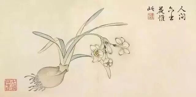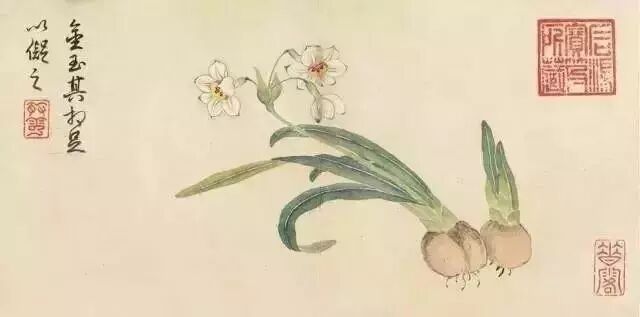 也有画风简洁的绘画作品,由乾隆御笔的《水仙册》系列。