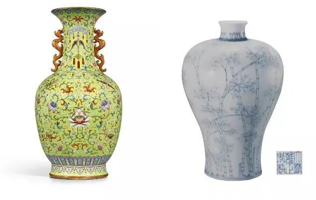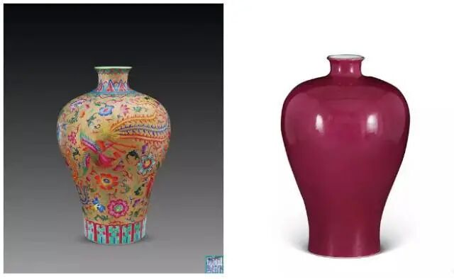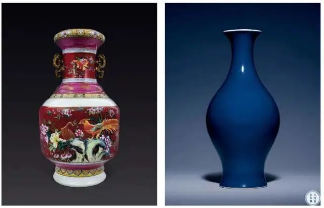 左:乾隆 轧道珐琅彩凤穿花纹梅瓶
