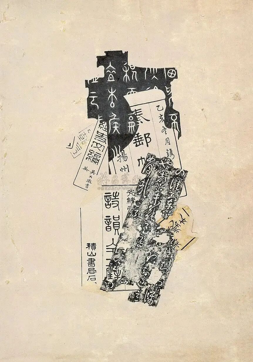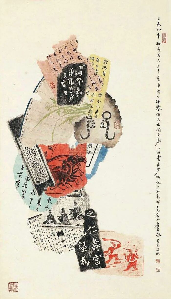 八破图看起来很随意,把拓文和书画作品残片随机贴合在一起,局部通常有半透明,隐约可以看到下一层,实质都是画家的精心设计: