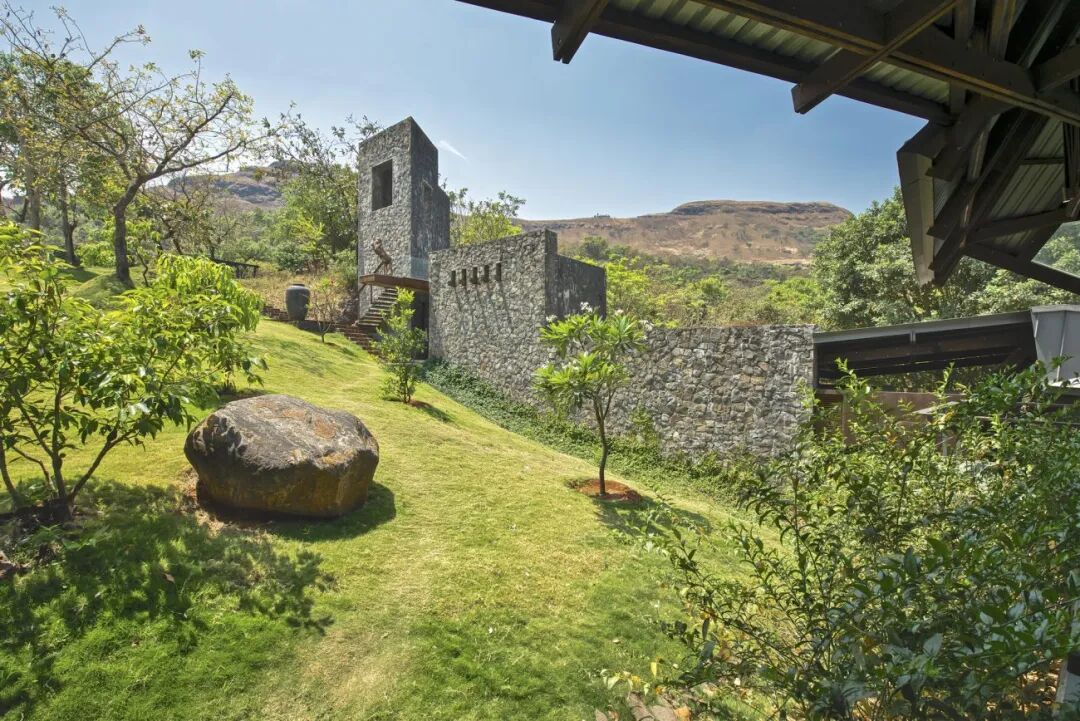 As a home for 4 generations, it behaves like a condensed village, allowing for private and communal life. The flow of the large load-bearing wall that traces the ridge between two ravines anchors the proposal and establishes itself as a “found” element, resonating the contours and material of the walls of the Tungi and Lohgad forts to the east and north of the site.