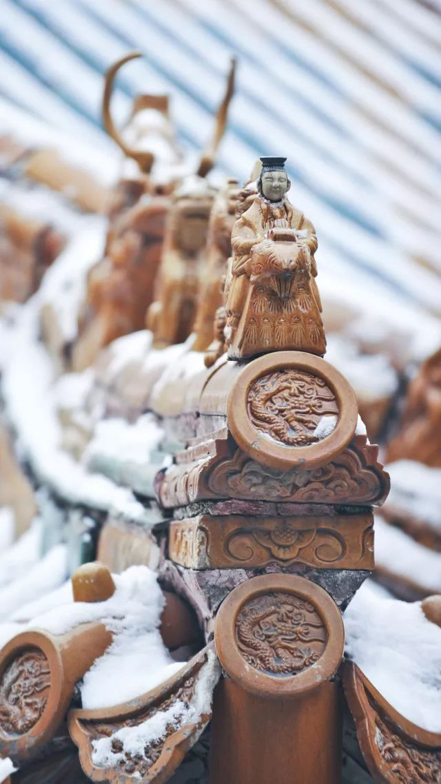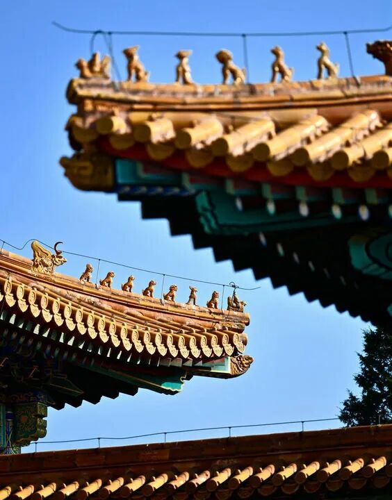 起初为实用而生,慢慢大家都觉得有些单调了,便在角檐垂脊上装饰了姿态各异的走兽,我们称之为飞檐脊兽。