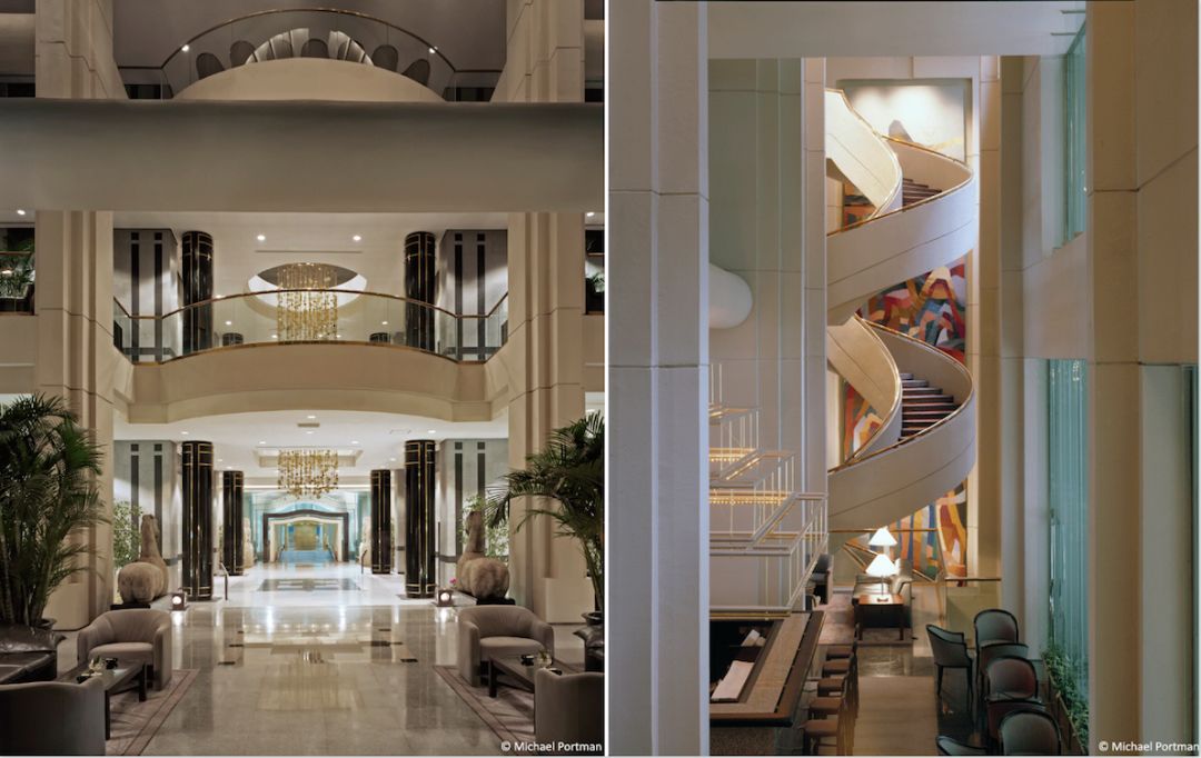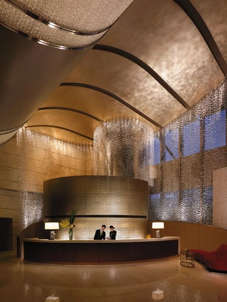 依然清楚记得童年时头一次去波特曼香格里拉的场景:汽车会穿入建筑内部,在满是红色立柱的落客区停下,为酒店大堂铺陈的是一条裹着玻璃幕、穿越怡人水系的拱桥,随后是当时个人心目中,全上海气场最重的酒店厅堂,禅意的东方庭院元素与雕塑感极强的旋转楼梯交相辉映,其平衡东与西、经典与当代、戏剧性和和谐感的功力令人不禁拍案。