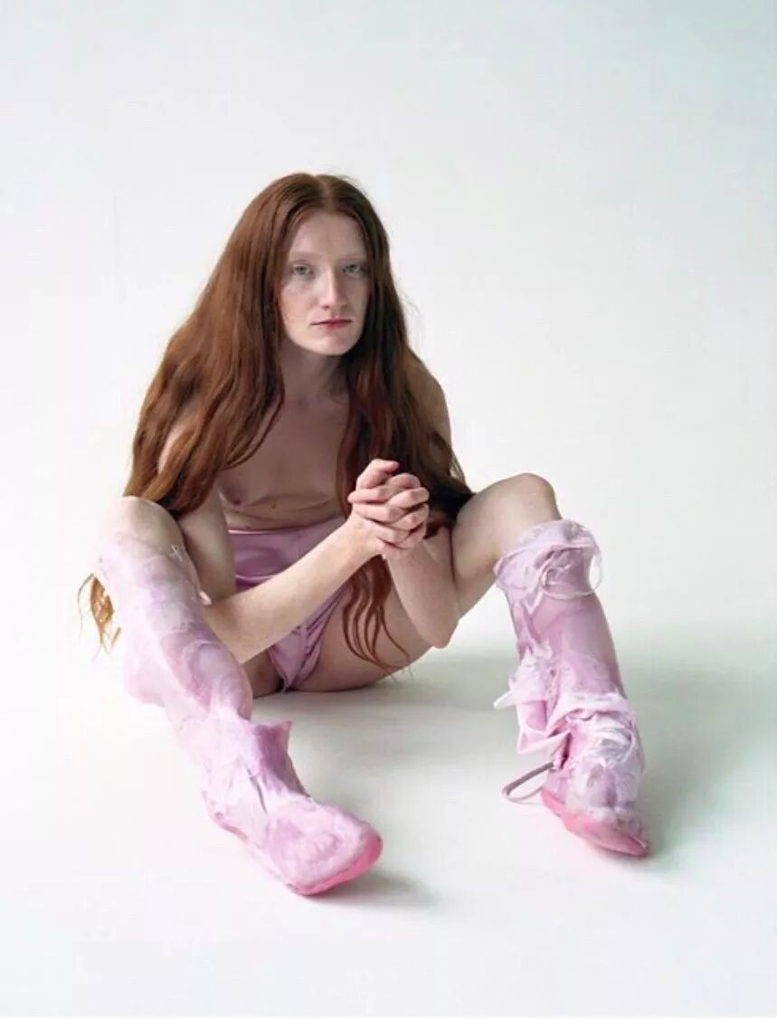 以jade身体的凹痕为特征,腹部有自然的折痕,臀部曲线以及乳房部分刻画的也十分精致。整套作品呈现出淡淡的大理石色调,仿佛皮肤下面嵌入涟漪,精致的褶痕又像是皮肤下的神经系统,与身体融为一体。