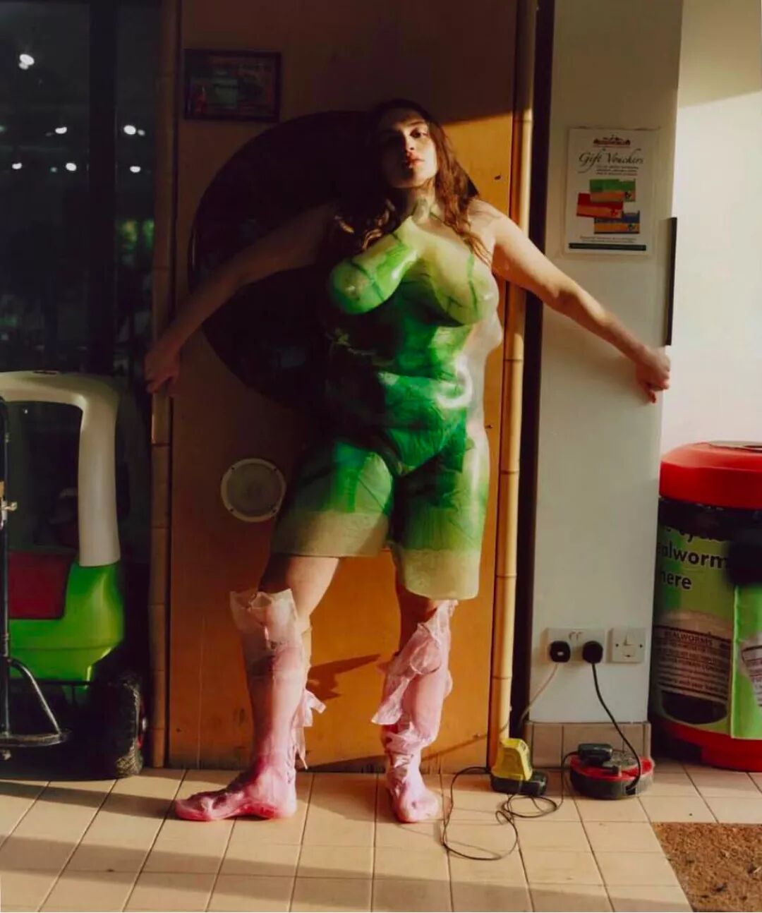她的系列设计通过对女性身体的探索,运用硅胶和玻璃纤维覆盖在女性身体表面制成模具,从而还原身体的自然形态,也试图呼吁改变社会对女性身体纤细的审美追求。