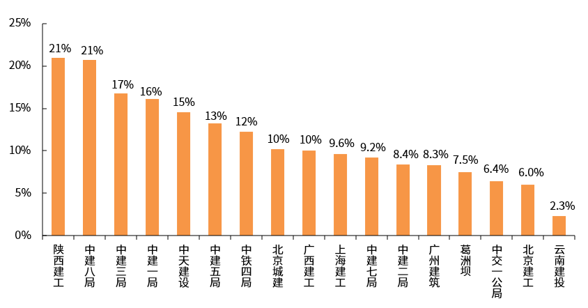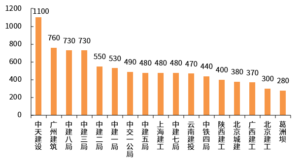 (数据来源:wind;中建二局为2019年的数据,其他为2020年)