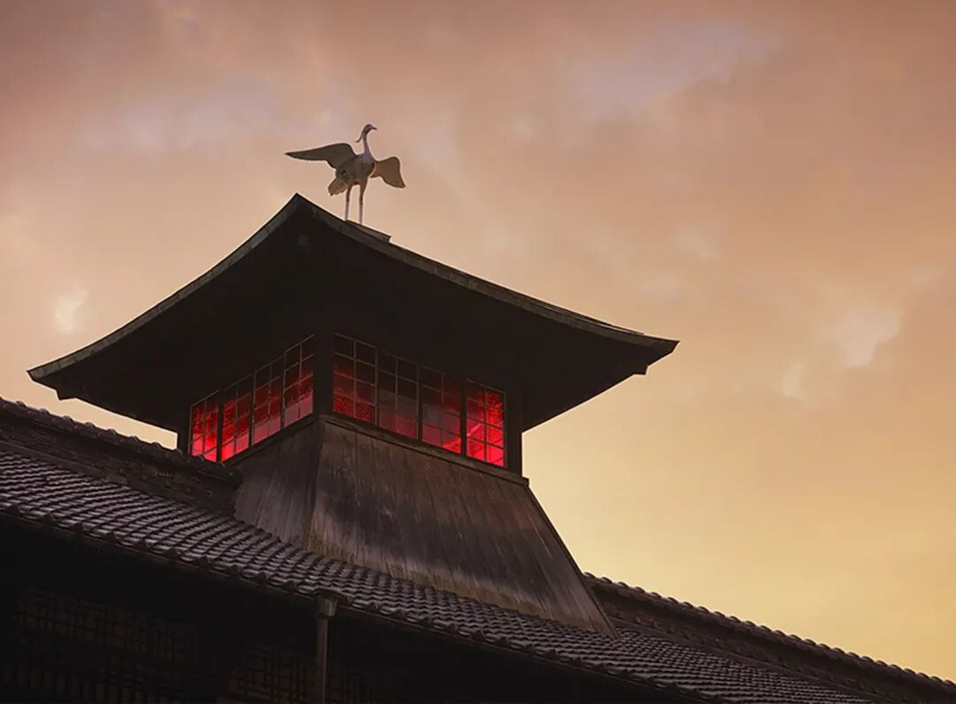风景的另一个灵感来自历史悠久的目黑雅叙园,这是一座位于东京7区下目黑东部边缘的博物馆和婚礼建筑群,建筑群被称为百团海坛或“100级阶梯”。