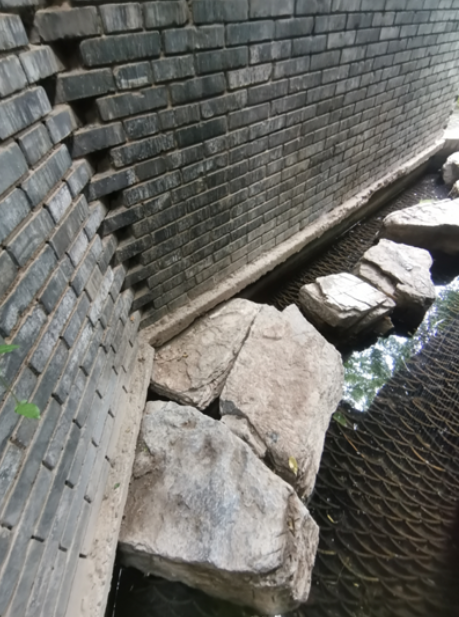 排水口美术馆内外都是一样的做法,里面是塑料管。左图在美术馆沿街侧拍摄,右图院内拍摄。