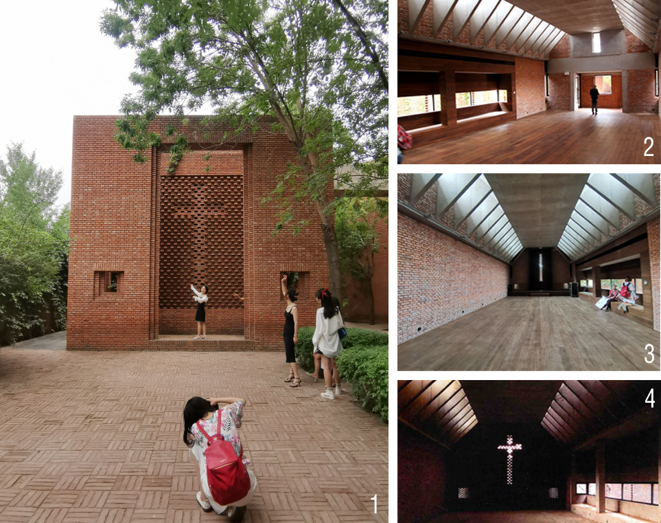 小教堂西侧墙的十字,董原意是用于吸引西方人,现已成为拍照佳地(图1),好奇于西侧墙的十字在室内看竟然少了一横(图3)