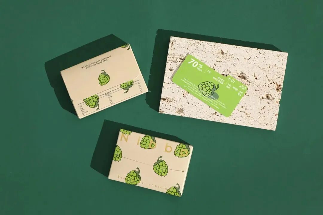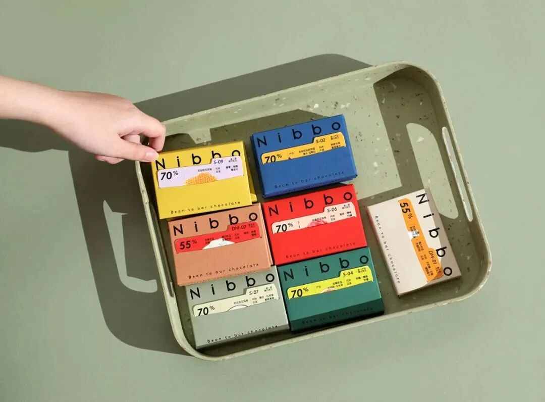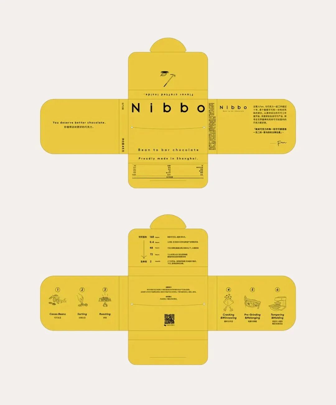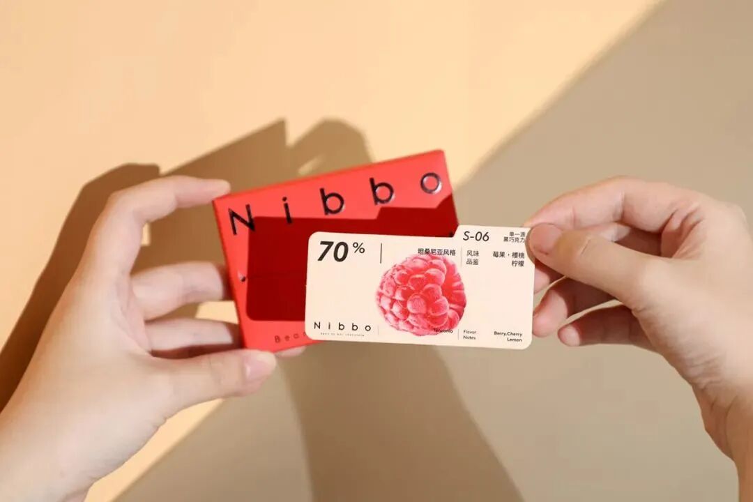 Nibbo 的名字来源于巧克力最核心的原材料「可可碎」,在英文中它叫作“nibs”。由于吃巧克力时通常都是小口咬下,英文是“nibble”。所以 Fan 决定取一个可爱谐音的名字,作为品牌名“Nibbo”。