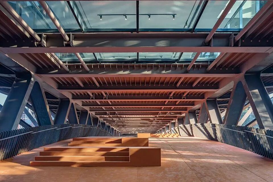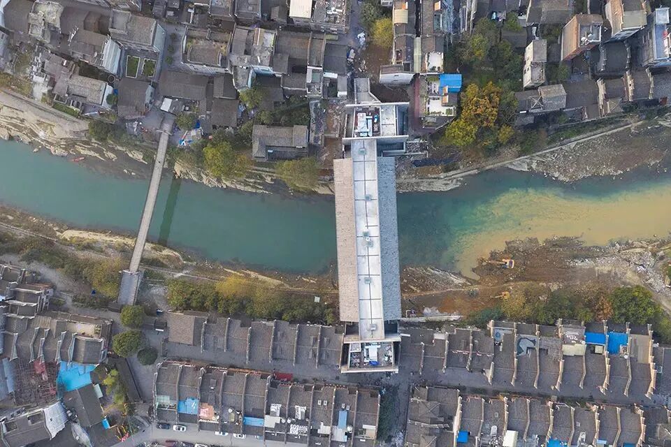 作为对这一古老建筑类型的当代诠释,我们的设计在保持传统廊桥的交通与歇脚功能的同时引入新的艺术内容,并将风雨桥的形式语言加以现代化。