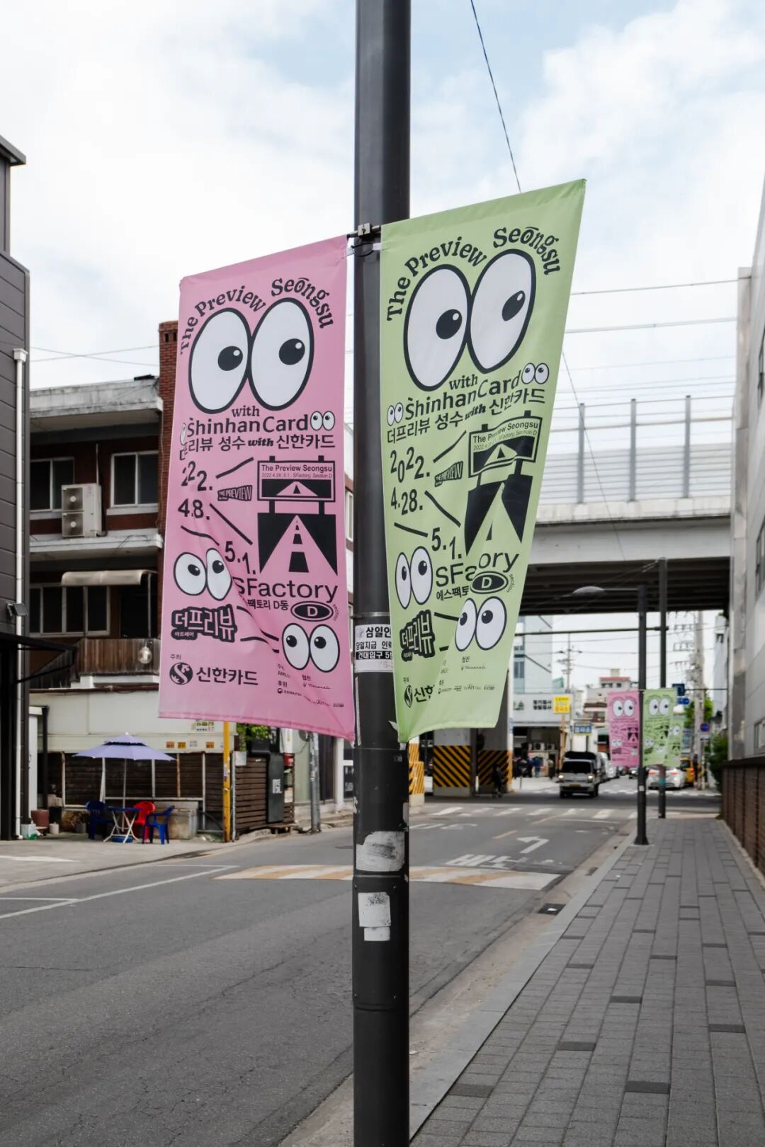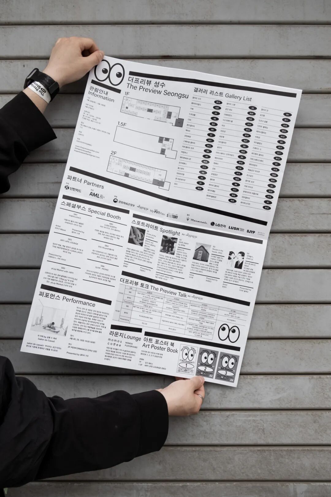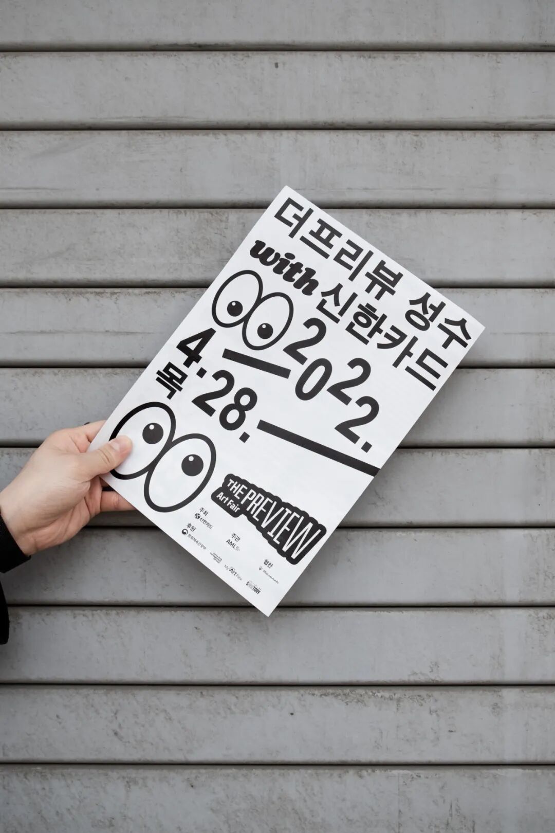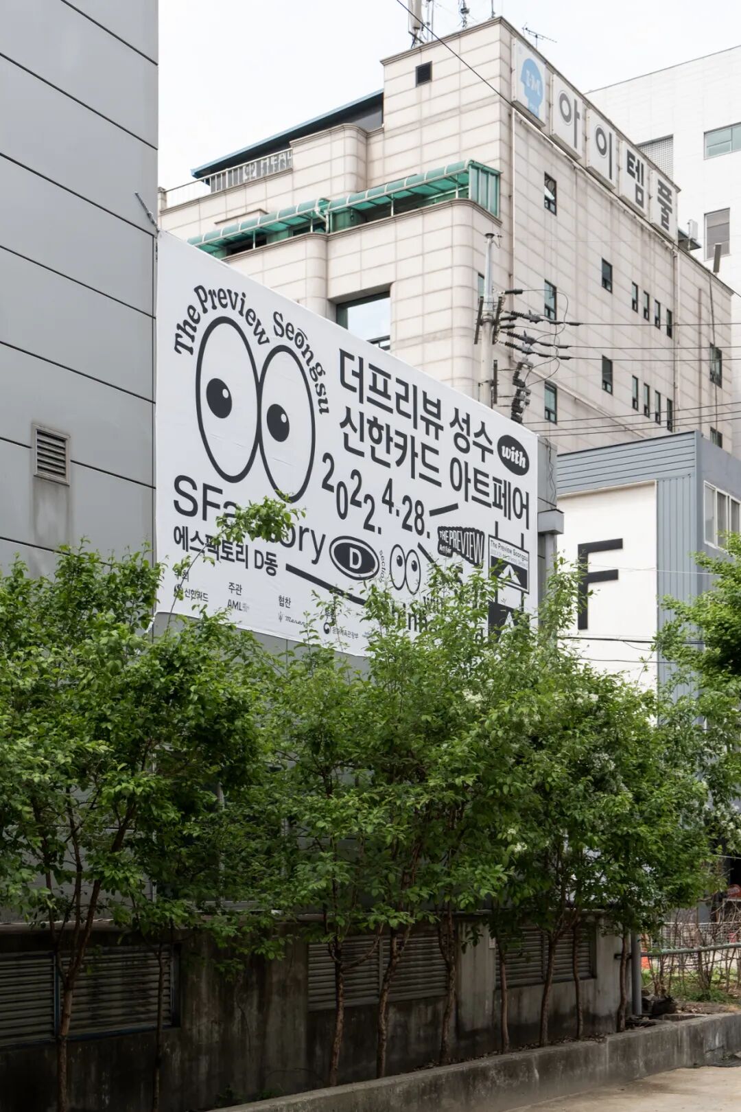 bbareunson将本次展会的标识设计称为“预览之眼”。同样在这个地方,SFactory有特定的遗产,SFactory是一个真实的工厂,它有工厂基础设施,如车库,升降机和柱子等。所以选择了黑色和白色的眼睛与其他线条,插图构成在任何纸张,衣服和数字屏幕。