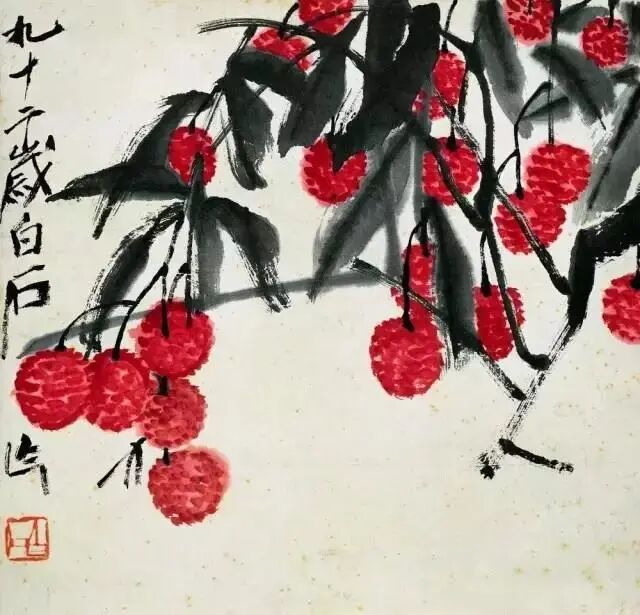 荔枝入画,取其谐音,寓以“吉利”、“大利”、“多利”等吉祥寓意。白石老人生前对荔枝情有独钟,其对荔枝的喜爱,也多能从他的画作中得到印证。
