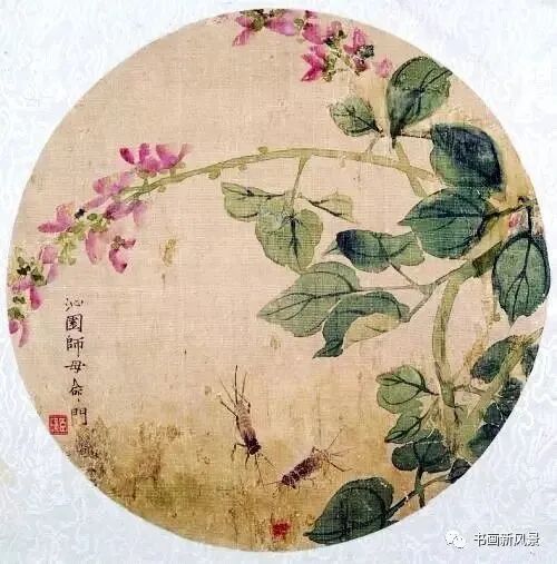 这件《花卉蟋蟀图》作于1906年,是齐白石为其师母,即胡沁园的夫人创作的,现收藏于辽宁省博物馆。