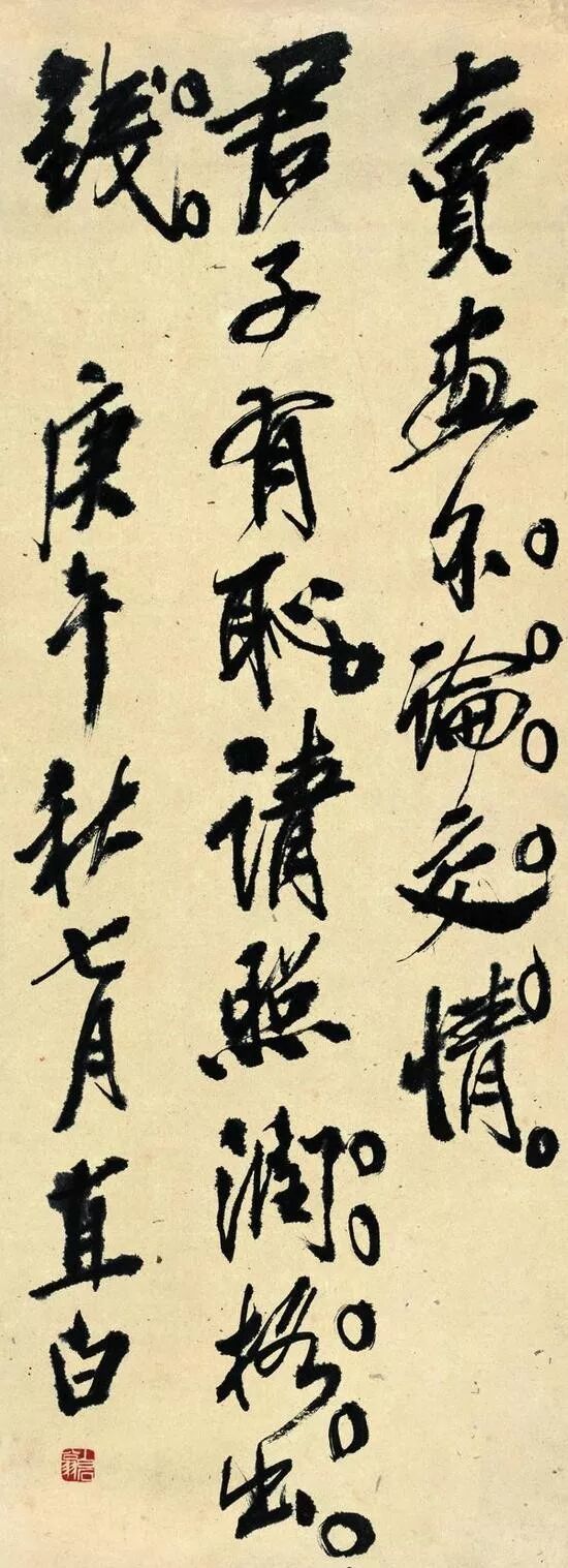 君子爱财,取之有道,白石老人并非所有财都好,也并不与日寇同流合污:“中外官长,要买白石之画者,用代表人可矣,不必亲驾到门。从来官不入民家,官入民家,主人不利。谨此告知,恕不接见。”