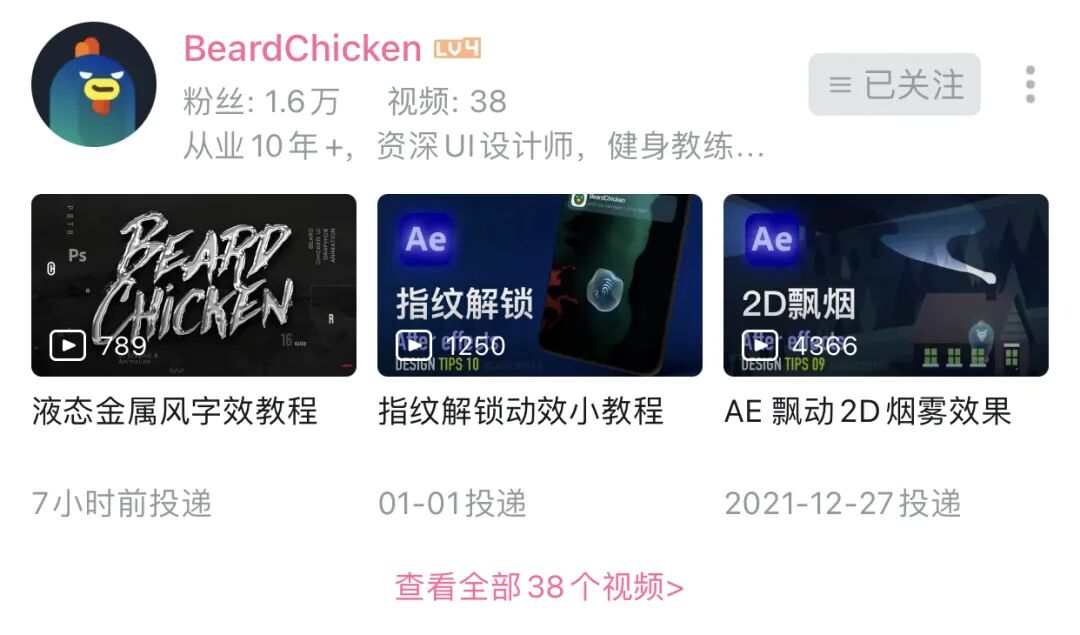 现在他也是B站的UP主一枚,不到两个月的时间,发布38个视频,现已经斩获1.6万粉丝: