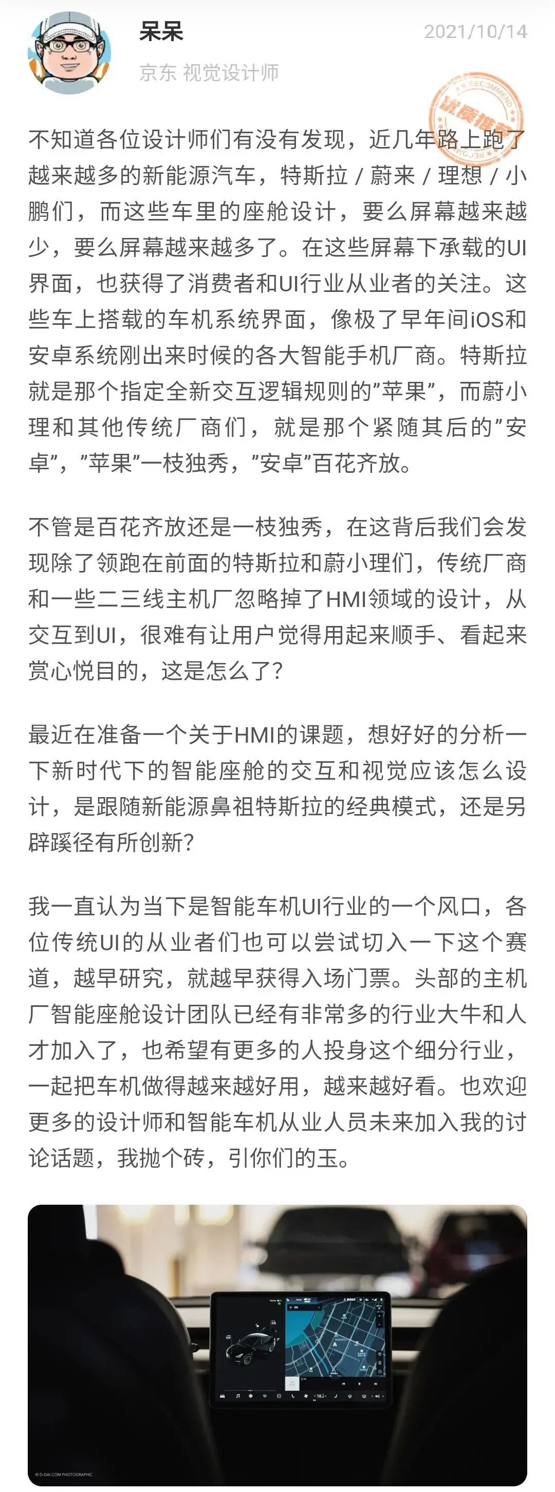 汽车HMI设计,在国内大力发展新能源汽车产业的大背景下,越来越多的被提及到,各家的中控等操作界面也会被拿来做对比。