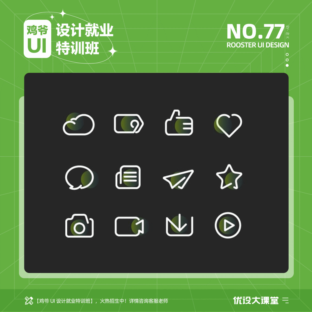 3个多月的鸡爷UI课程,涵盖多种软件灵魂操作,包含元素设计/项目实战/运营设计/交互动画/职场技巧/作品集指导等,海量干货内容带你突破自我。