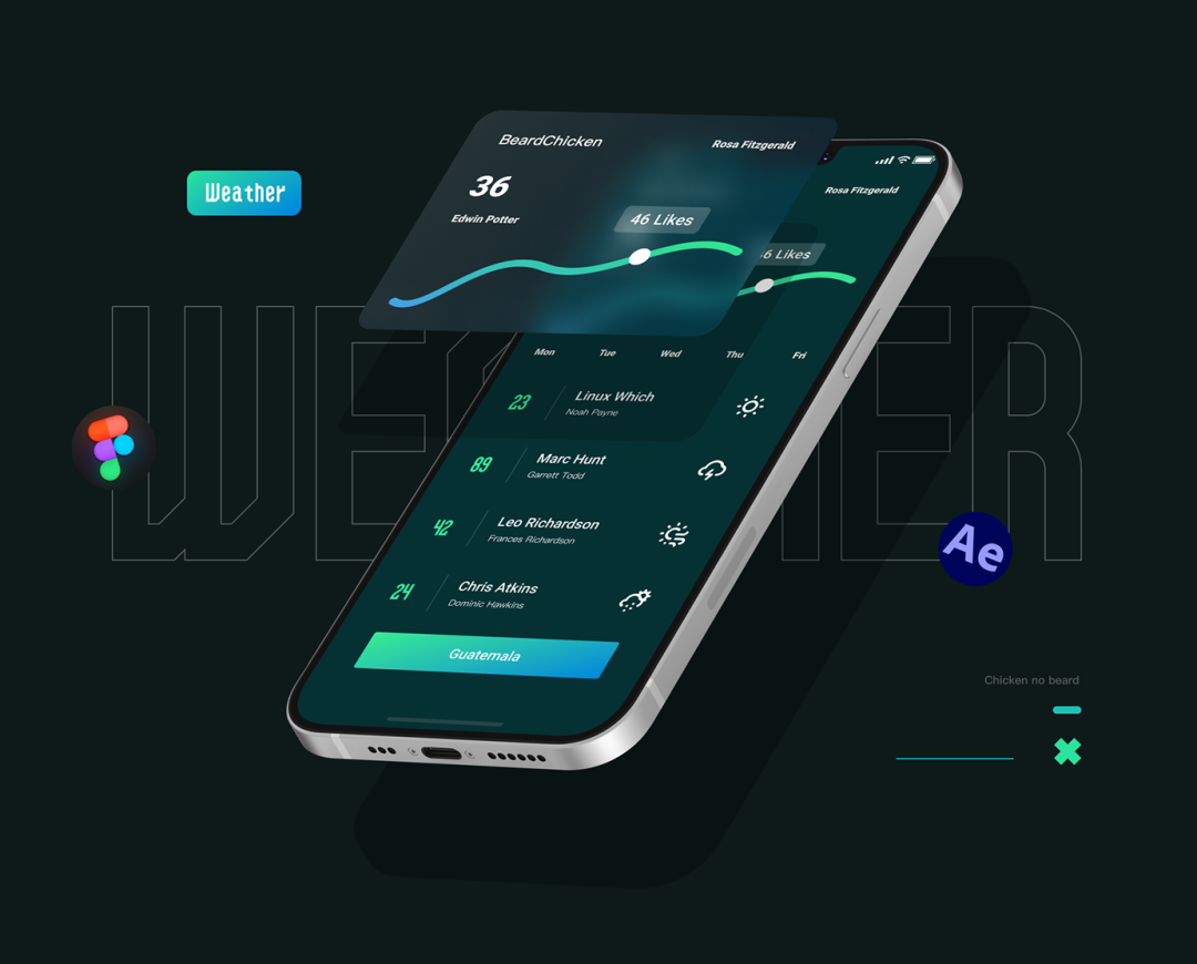 对于AE、Sketch、ProtoPie、Figma等,更是熟练的没话说。从字体设计到插画,从界面设计到动效,似乎没有什么能难住他……