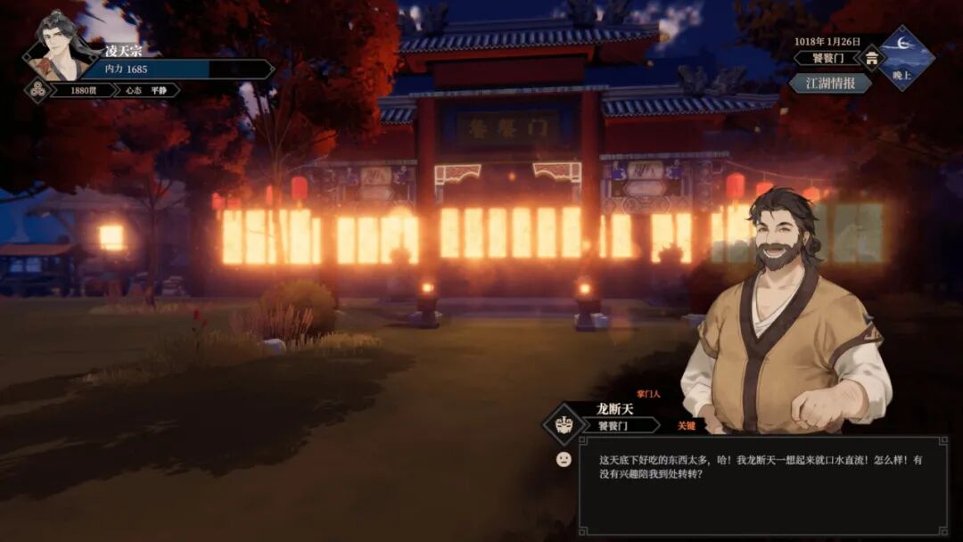 玩家可使用自创角色,在北宋江湖经历冒险成长,通过包括烹饪、鉴宝、演奏、赋诗、写作、绘画、撰写功法秘籍等玩法提升自己,参与天书论剑争夺江湖盟主,游戏中每一个NPC都有自己的关系网。