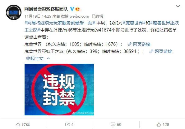 网易暴雪游戏客服团队今日发布了新一期的违规帐号封禁公告,对《魔兽世界》、《魔兽世界怀旧服》、《守望先锋归来》以及《炉石传说》等游戏中存在外挂/作弊等违规行为的88142个战网账号进行了处罚。