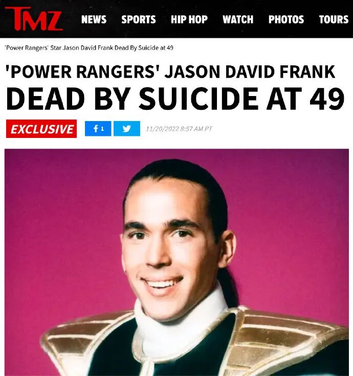 据TMZ报道,在美版《恐龙战队》中饰演汤米的杰森·大卫·弗兰克去世,年仅49岁,死因为自杀。