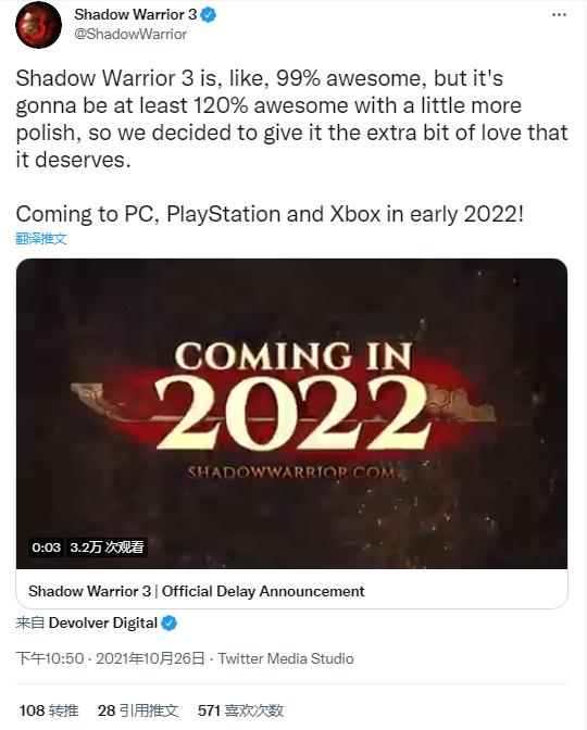 本作在早期预告片时曾定下了2021年的某个暂定发布日期,但显然目前情况有所变化。开发团队Flying Wild Hog则表示推迟的一部分原因就是希望可以将游戏的质量从99%提高至120%。他们称,将会在未来公布更多游戏画面以及正式发布日期。