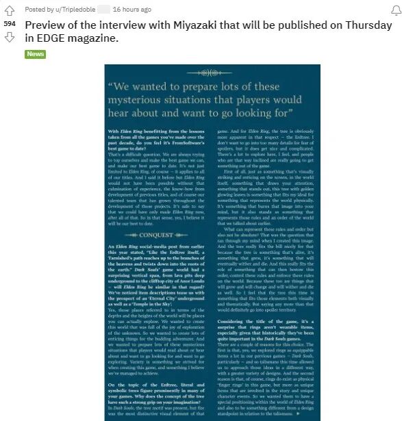 宫崎英高证实《艾尔登法环》