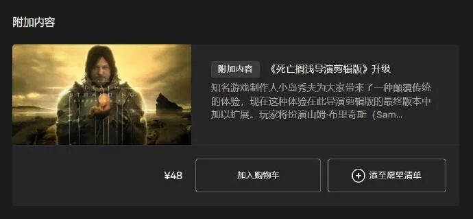 PC版《死亡搁浅 导演剪辑版》现已登陆Steam/Epic Store,售价¥198。通过游戏商城购入原版的玩家可以花费¥48升级至导演剪辑版。