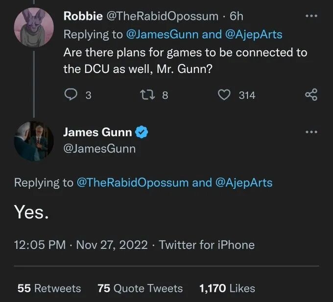 DC联合CEO James Gunn证实了早先的一份报道,华纳兄弟互动娱乐公司 WB Games 将制作与DC电影相关的游戏。该计划是建立一个新的DC宇宙,游戏和电影都将是其中的一部分。