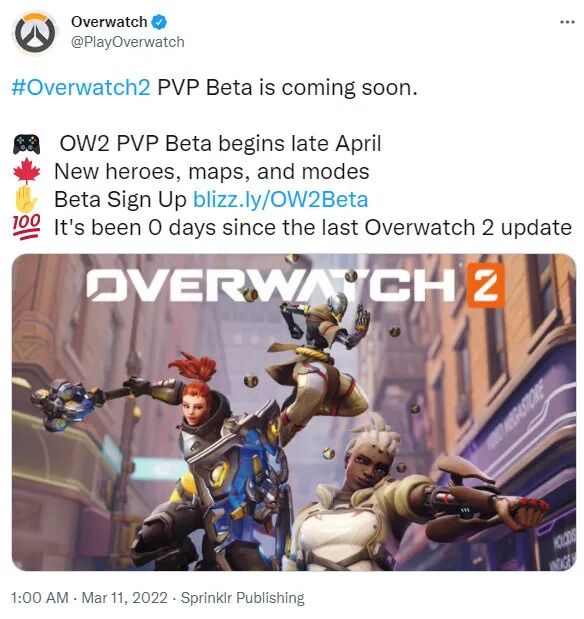 暴雪宣布《守望先锋2》将于4月下旬开启5V5 Beta测试,目前已于官方网站开放报名,有兴趣的玩家可申请封测资格。