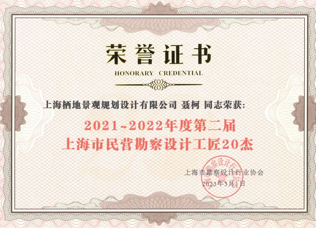 栖地设计咨询(上海)股份有限公司董事、总经理戚占军先生,上海栖地景观规划设计有限公司总裁、董事、首席设计师聂柯先生受邀参加此次盛典。聂柯先生荣获2021-2022年度第二届上海市民营勘察设计工匠20杰荣誉称号。