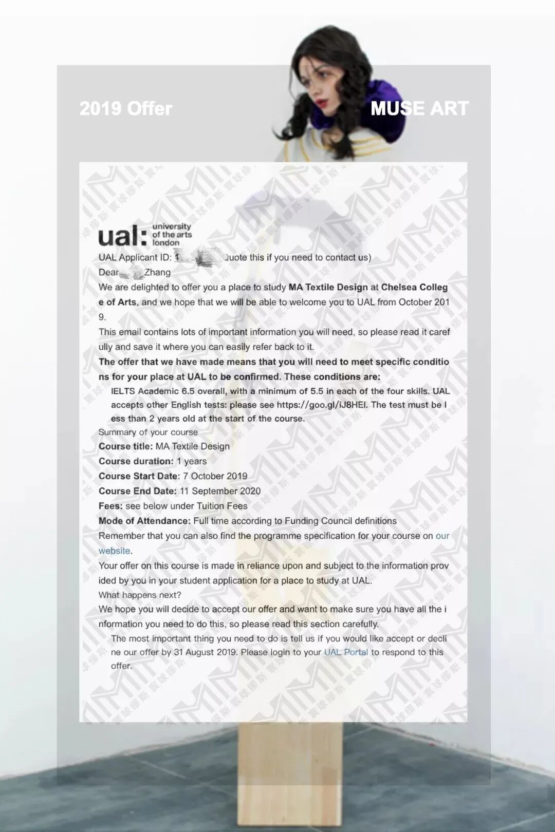 能够成功获得切尔西艺术学院面料硕士的OFFER!