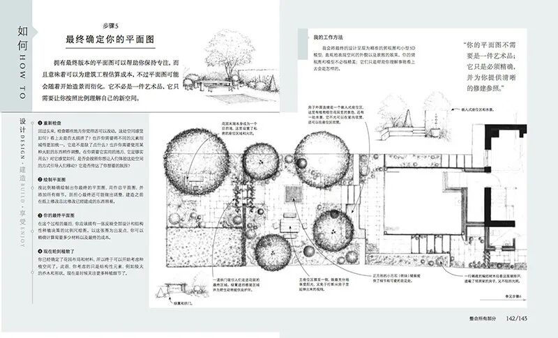 除了有十分美丽的园艺图片外,还有丰富的植物图谱、造园步骤图以及作者亲笔绘制的设计步骤图,内容十分丰富。