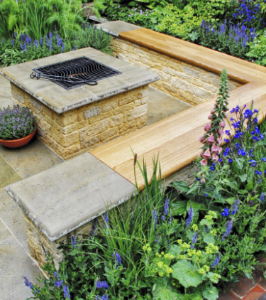 回收利用的约克郡石不但看上去非常优雅,而且赋予台地一种永恒感。