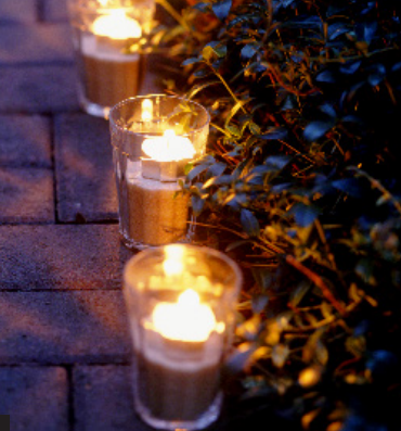 简单的香薰蜡烛在夜色中摇曳,有助于营造气氛。