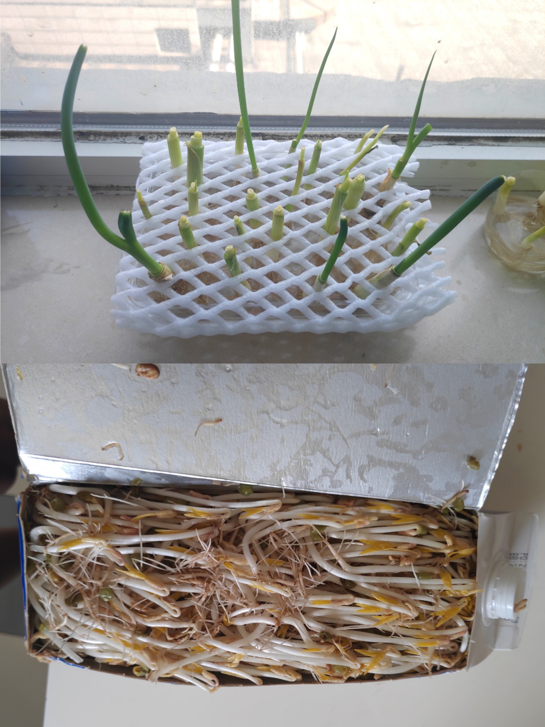 Peer pressure 啊!!别人都行动起来了,我还在为小区里找不到地方惆怅而矫情,太浪费这个美好的夏天了。所以为了不甘为人后,我也做了点力所能及的小事情,比如和家人水培了一小盆小葱、用牛奶盒发了满满的绿豆芽……