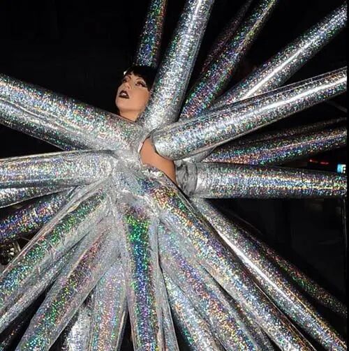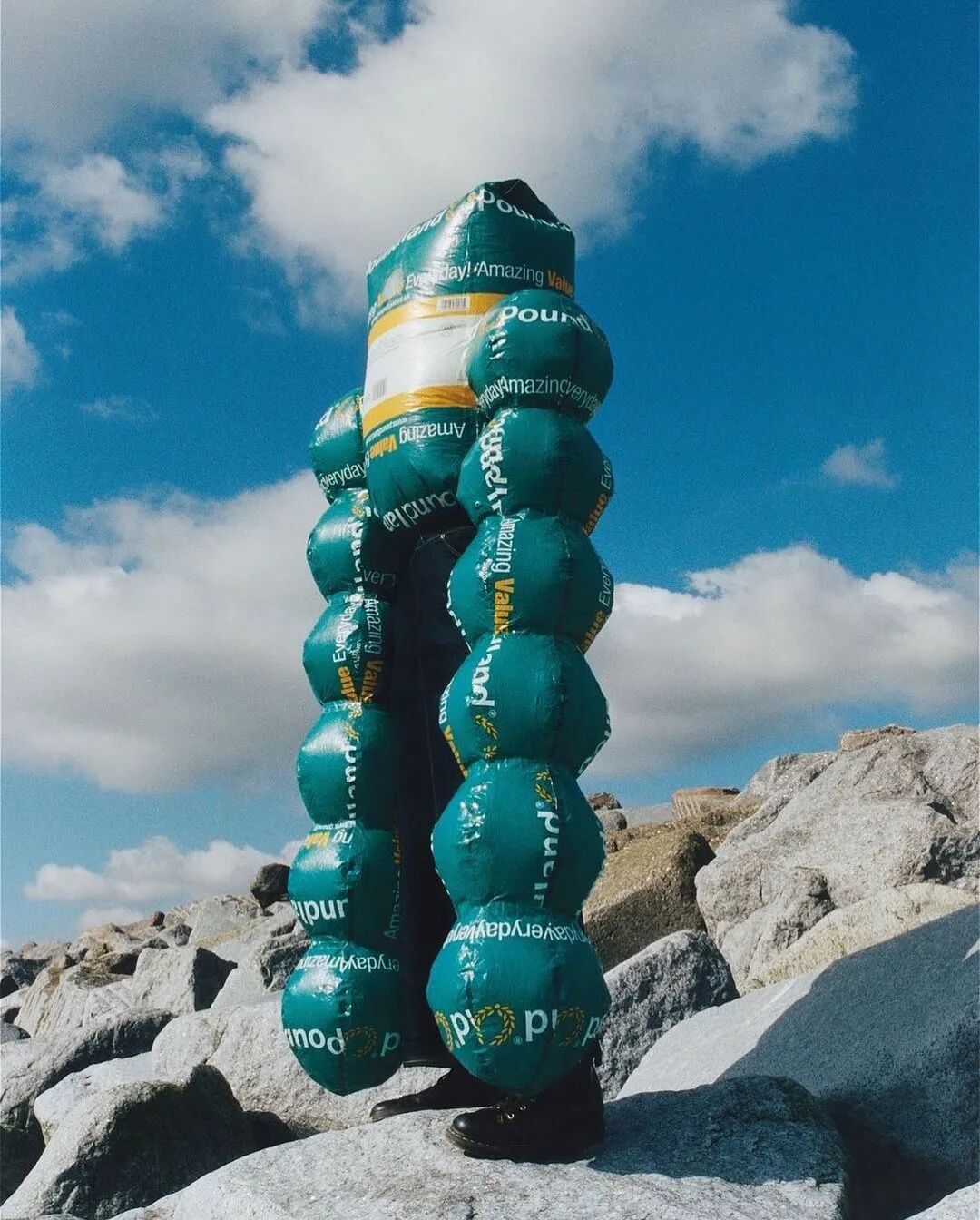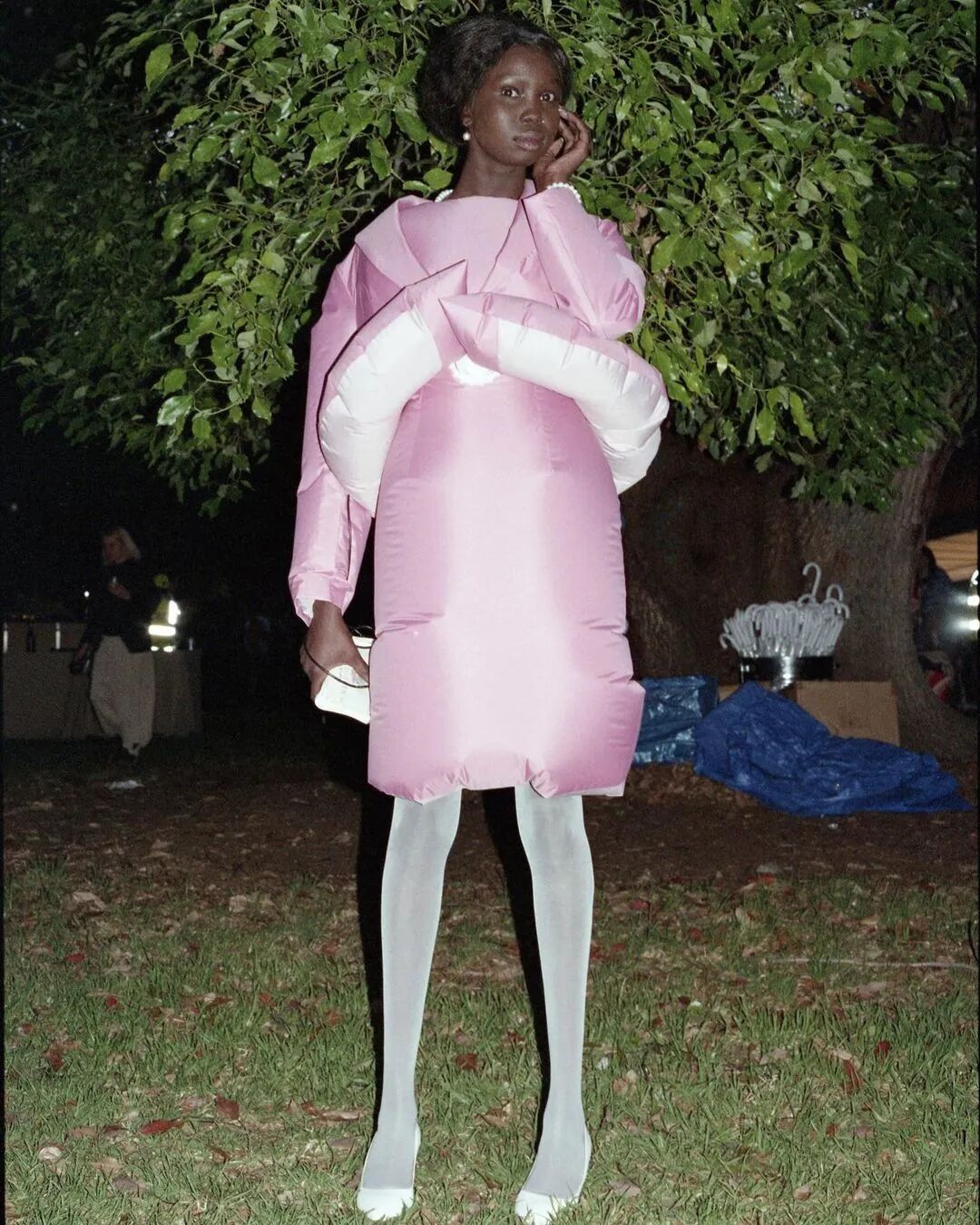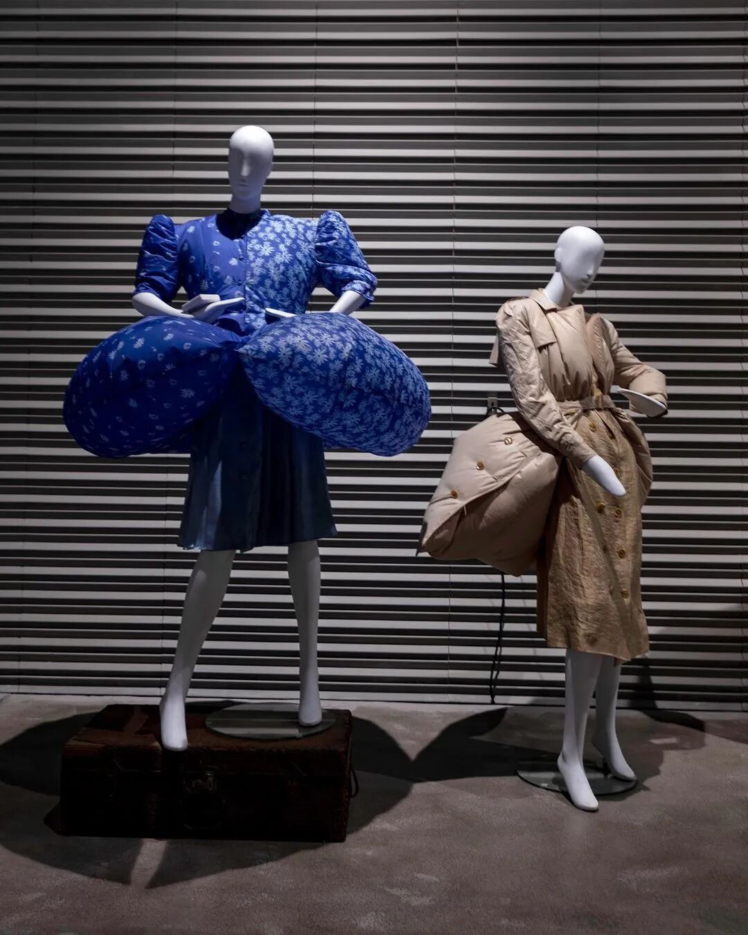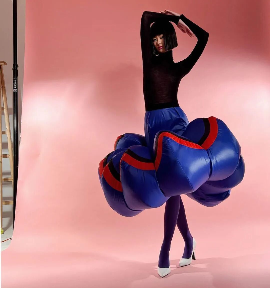 大体积的结构和气体膨胀所呈现出的圆润感,让服装廓形焕然一新。直到今天,也有很多新锐设计师们在充气时装上进行着探索和尝试。