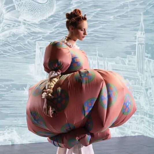 系列展览在将虚拟的(或想象的)外星文化和人类文化中的充气技术结合在一起。这个系列展示了设计师对打破传统服装设计与其他领域的界限,不断挑战服装设计的可能性的兴趣。