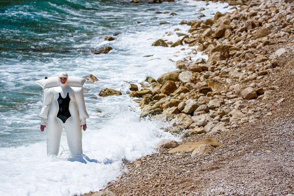 对于 Siigii 而言,她再也不能躺在泳池里放松的享受阳光了。因此,她化病痛为灵感,设计出了这款可以只暴露一点点皮肤,放松地让自己漂浮在海面的服装,即使不会游泳也可以穿着它放松的体验漂流的感觉。