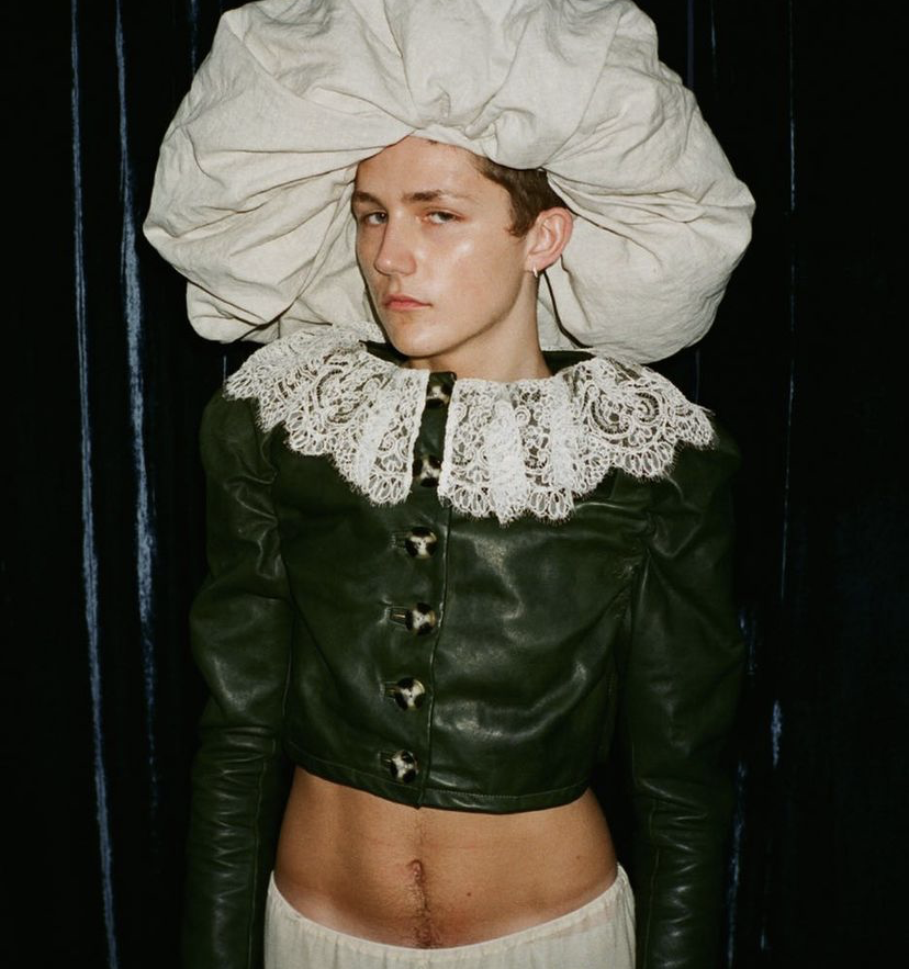 Fredrik Tjærandsen 是一名视觉艺术家和设计师,来自北极圈以北的挪威 Bodo。Tjærandsen 于2019年毕业于中央圣马丁的时尚女装学士学位,并获得了 Les Visionnaires 奖学金。他的毕业设计系列 "Moments Of Clarity "因其 "Bubble "作品获得了大量关注,这些乳胶气球被吹起,作为连衣裙或裙子吞噬穿着者。