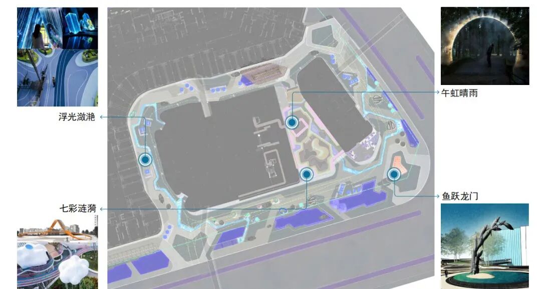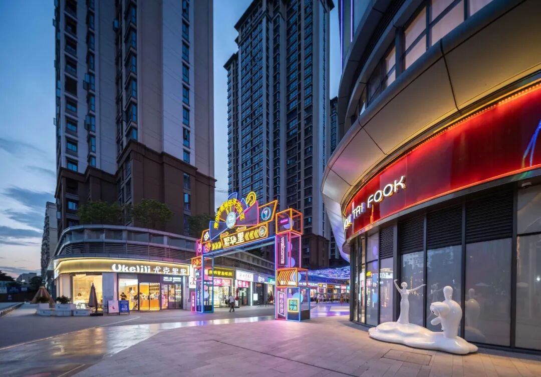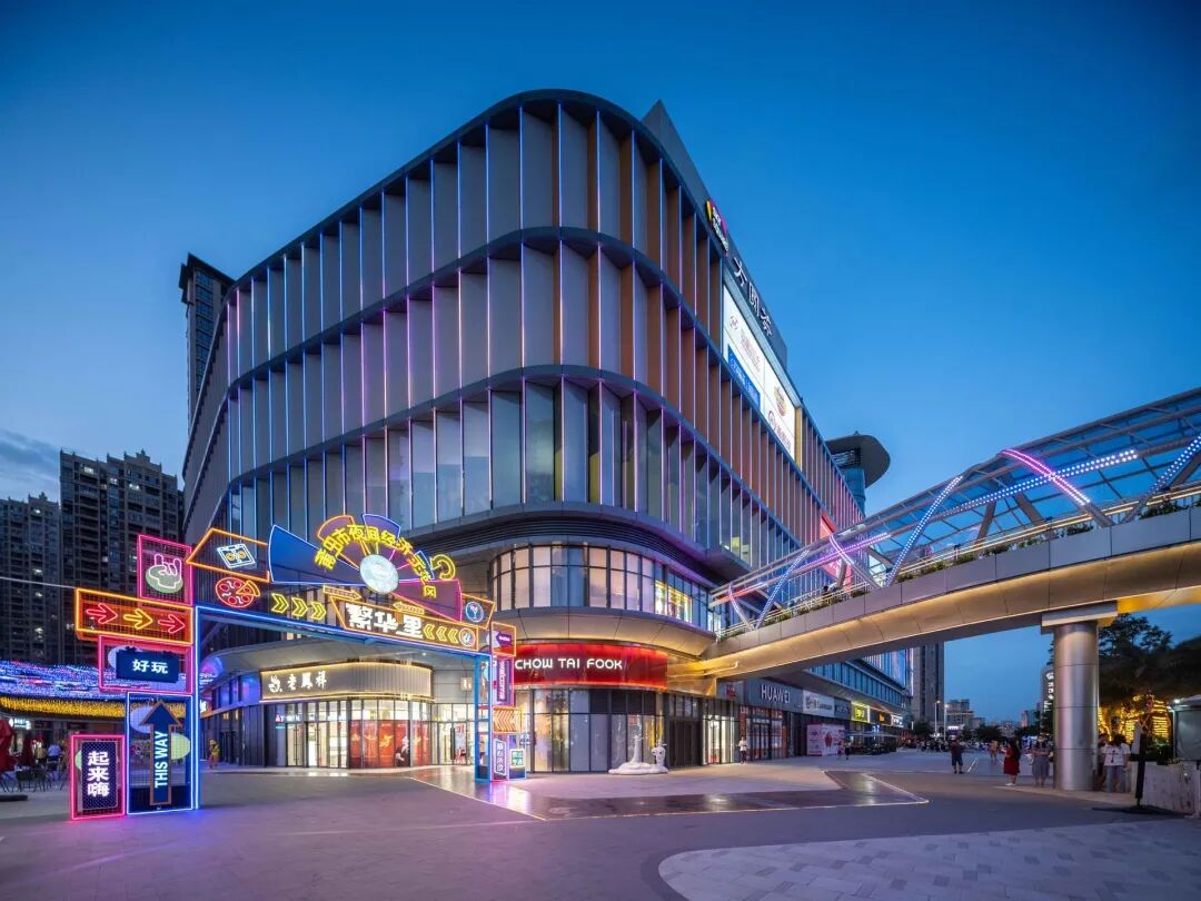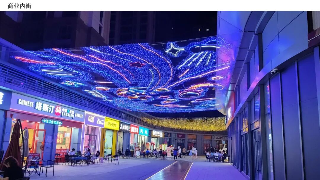 场地注重构建多重光影场景,打造多个夜景打卡点,营造沉浸式夜间消费环境。通过前沿科技互动,强化独特原创IP场景化体验式游乐,以玩带商,引领先锋商业体验。